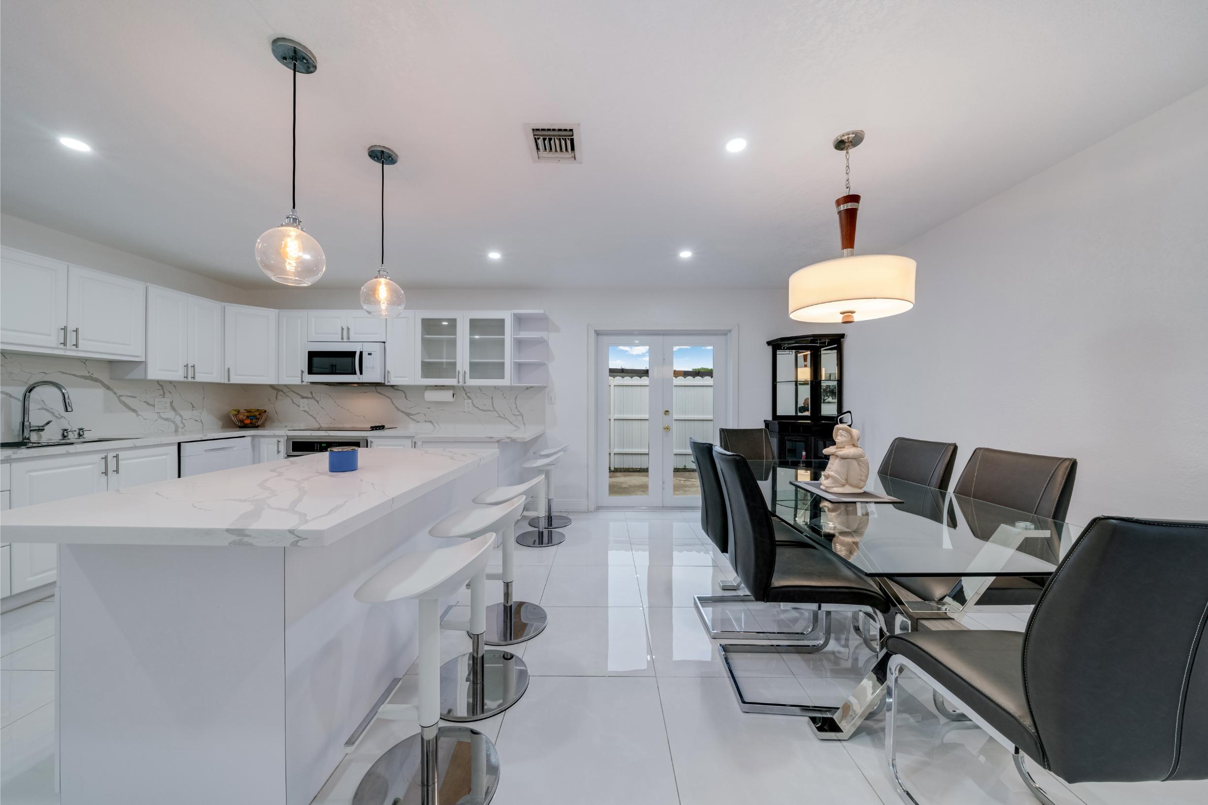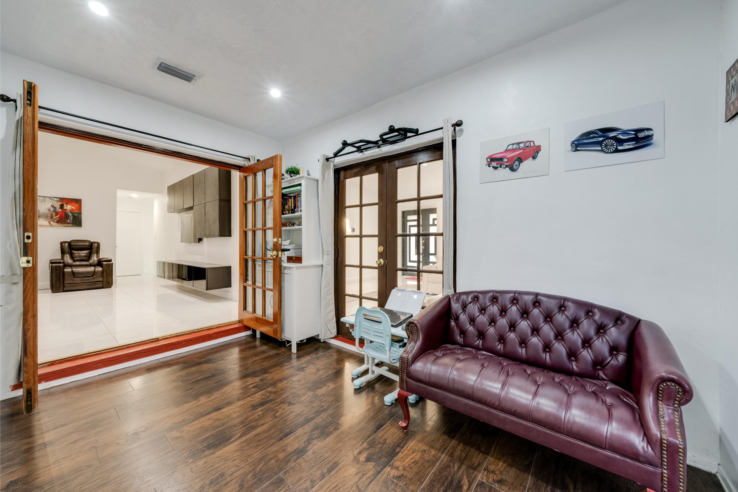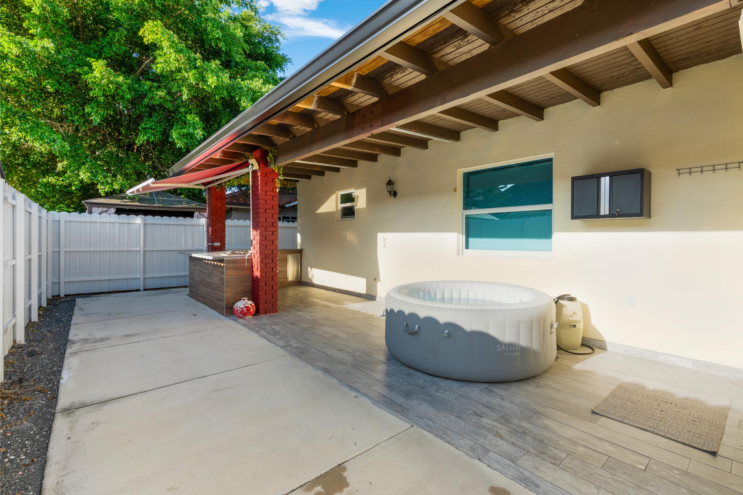 Your dream home awaits! This fully remodeled, smart, and modern 4-bed, 2-bath home with an extra 5th room (office/gym) is located in the sought-after Shoma Homes area—no HOA! Enjoy a chef’s kitchen with quartz countertops, new appliances, and custom closets throughout. Luxurious bathrooms feature glass showers, LED mirrors, and a hydromassage tub in the master. The climate-controlled garage doubles as a 4K home theater with 5.1 surround immersive sound system—perfect for family movie nights or showcasing your collector car. Smart home tech lets you control lights, A/C, and cameras by voice. Outside, relax in your tiki-style patio kitchen and jacuzzi. New metal roof (2025), impact windows/doors, LED lighting and newer A/C keep your home insurance and energy bills low. Close to top-rated schools, FIU, Dolphin Mall, and major highways to skip traffic—this home truly has it all!