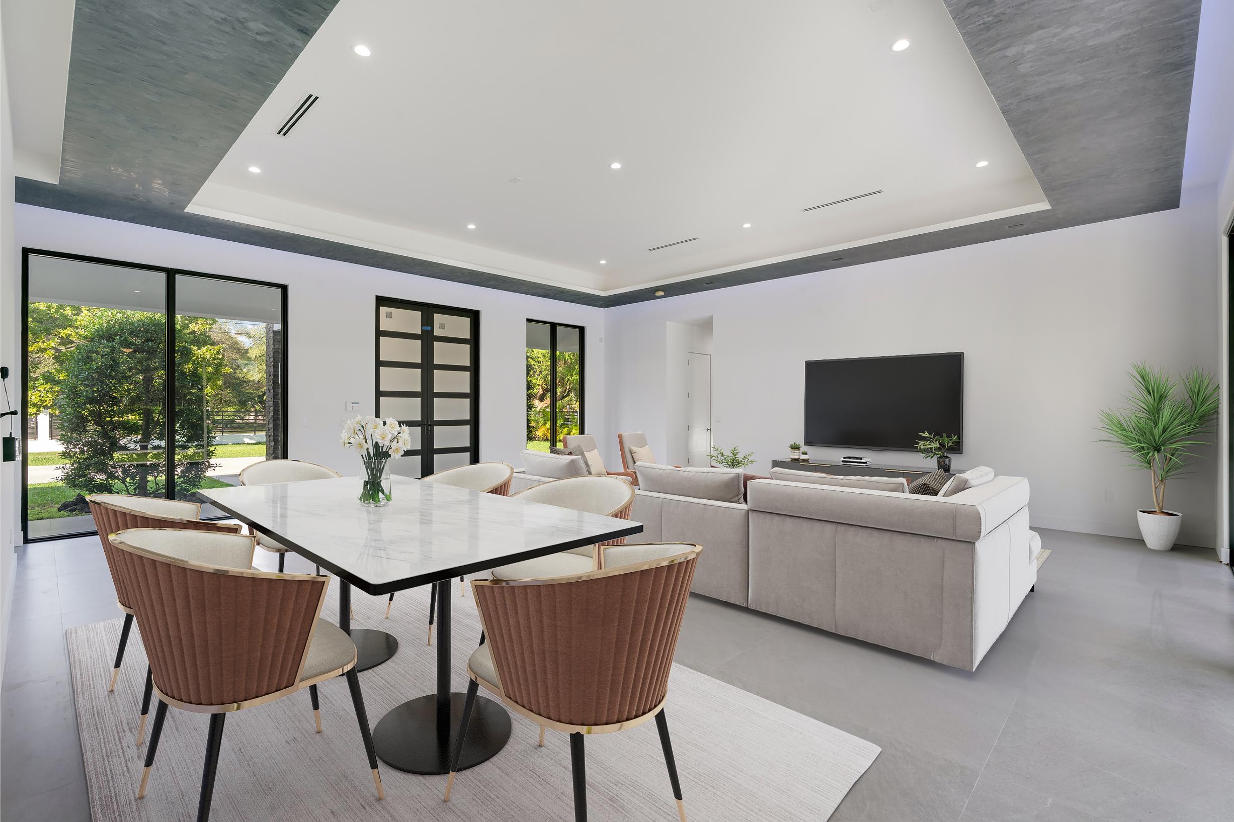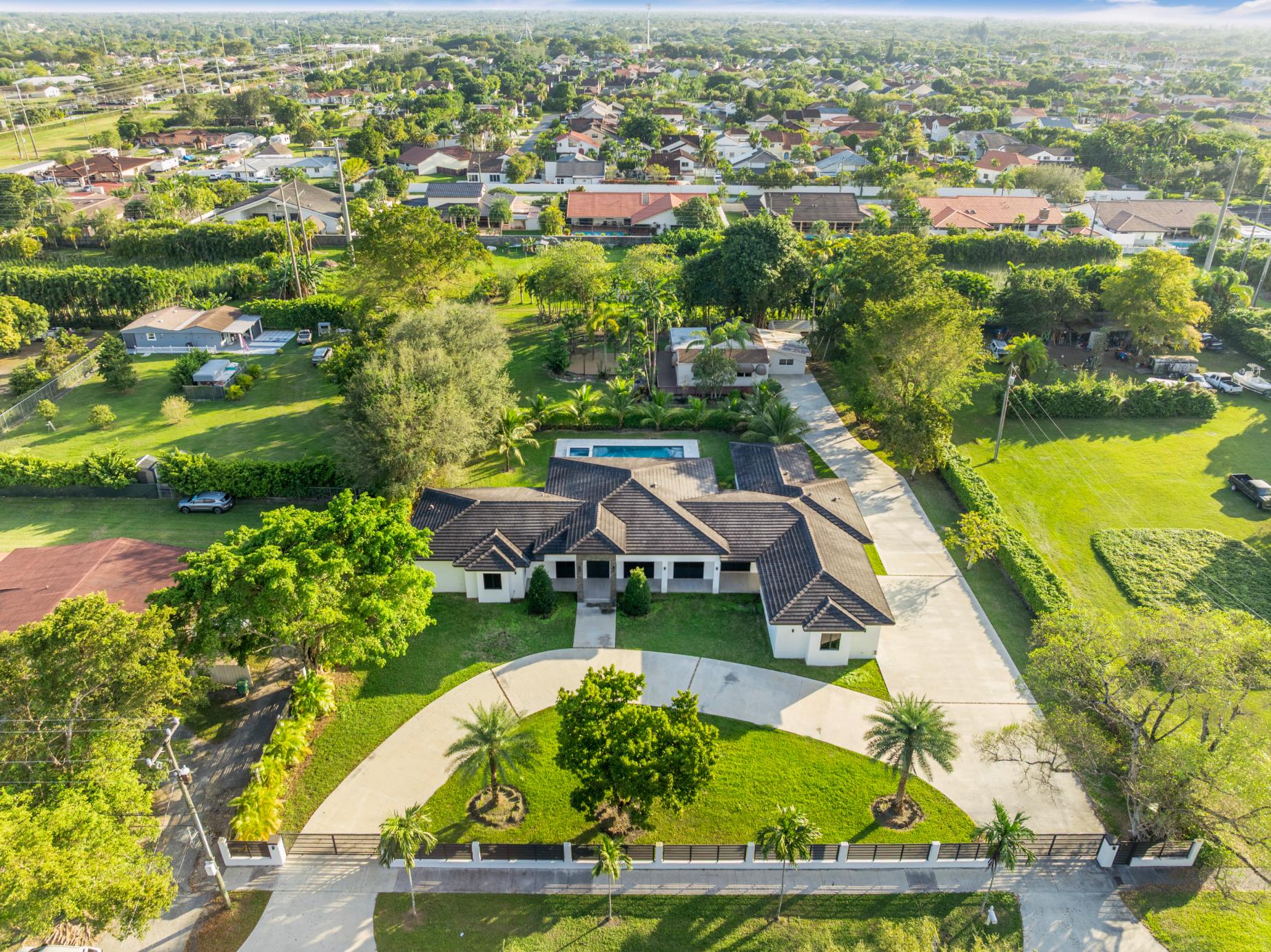 This extraordinary property offers a rare opportunity to enjoy both space and sophistication with two separate residences on one expansive 52,707 s/f lot. Thoughtfully designed for flexibility and privacy, the estate is perfectly suited for multigenerational households or anyone seeking additional living options without compromise. The primary home encompasses 5,764 total s/f featuring 5 bedrooms and 5 bathrooms. Designed with hosting and everyday comfort in mind, it includes a gourmet kitchen, spacious common areas ideal for gatherings, and a dedicated laundry room with separate washer and dryer. Complementing the main residence is a second home spanning 1,985 s/f offering 3 bedrooms and 2 full bathrooms. This home includes a complete kitchen, dining area, and a charming front porch creating an inviting space to relax and connect with family. Located in the desirable Miller Estates, this property delivers more than just a place to live—it provides a lifestyle rooted in community, privacy, and exceptional versatility.