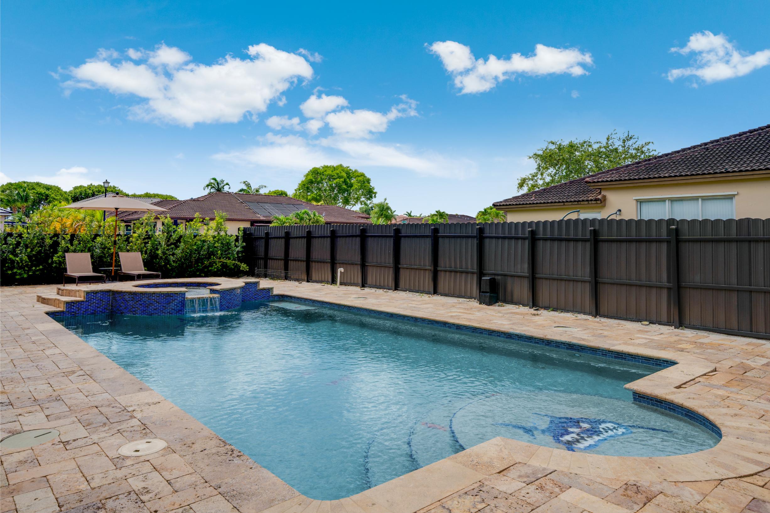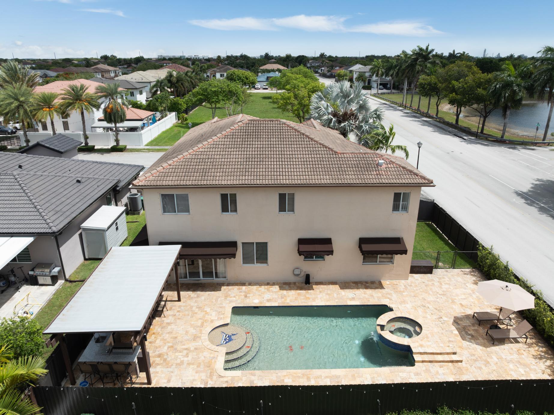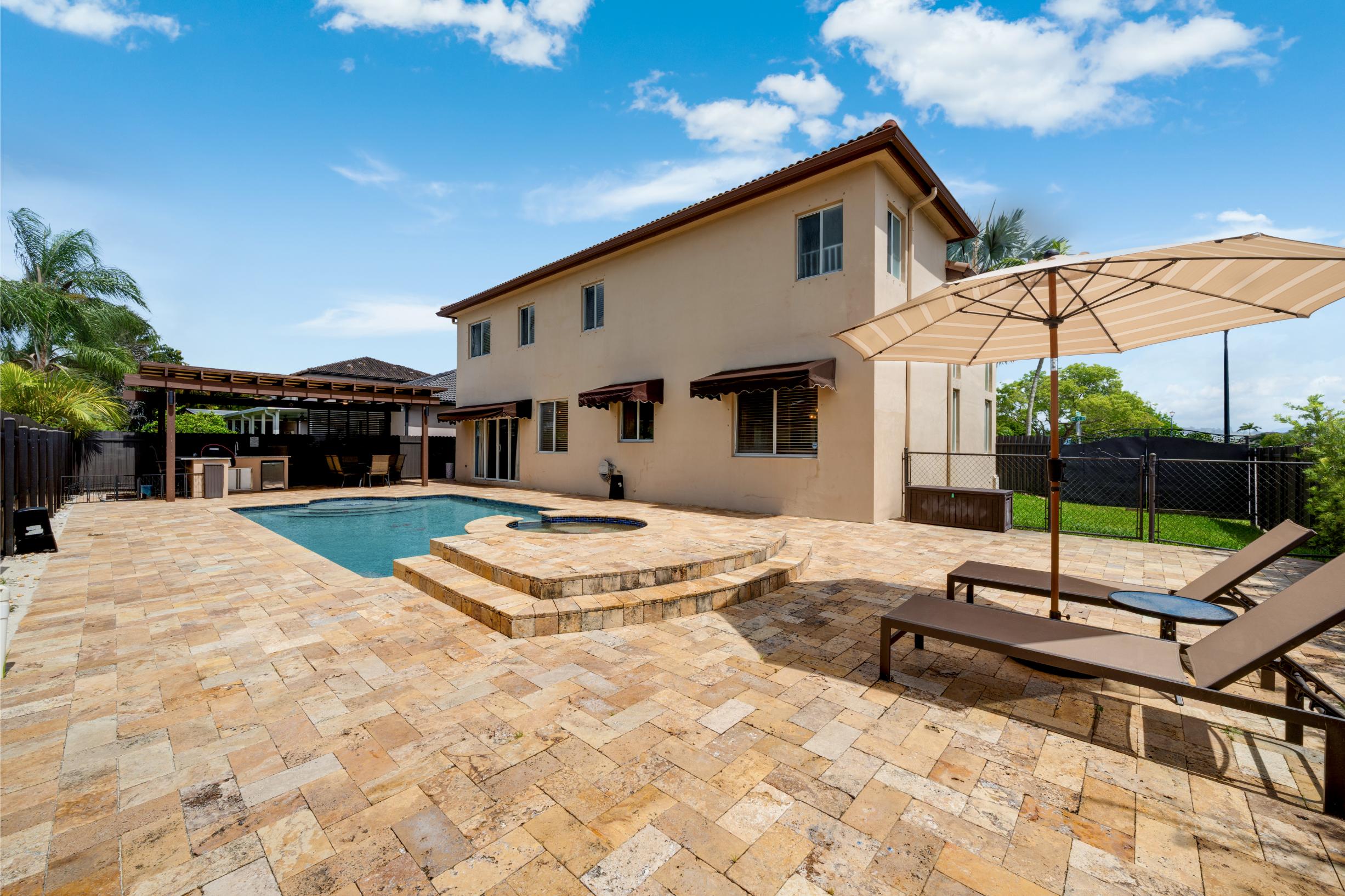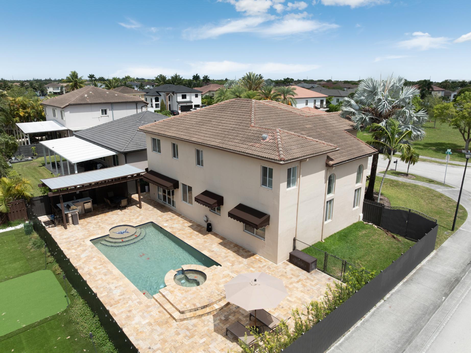 Situated on a generous 7,321 s/f corner lot, this beautifully maintained home features 6 bedrooms and 3 bathrooms across 3,762 total s/f. Enjoy the convenience of a 3-car garage and a sparkling pool, perfect for Florida living. Inside, the home offers soaring ceilings, multiple living areas, and a versatile layout—including a first-floor bedroom and a third garage space ideal for conversion into a private suite, in-law quarters, or potential rental unit. The expansive backyard provides a serene setting for entertaining or relaxing in your own private retreat. Ideally located near FIU, major expressways, top-rated schools, shopping, and dining. This move-in ready gem offers comfort, flexibility, and endless possibilities.